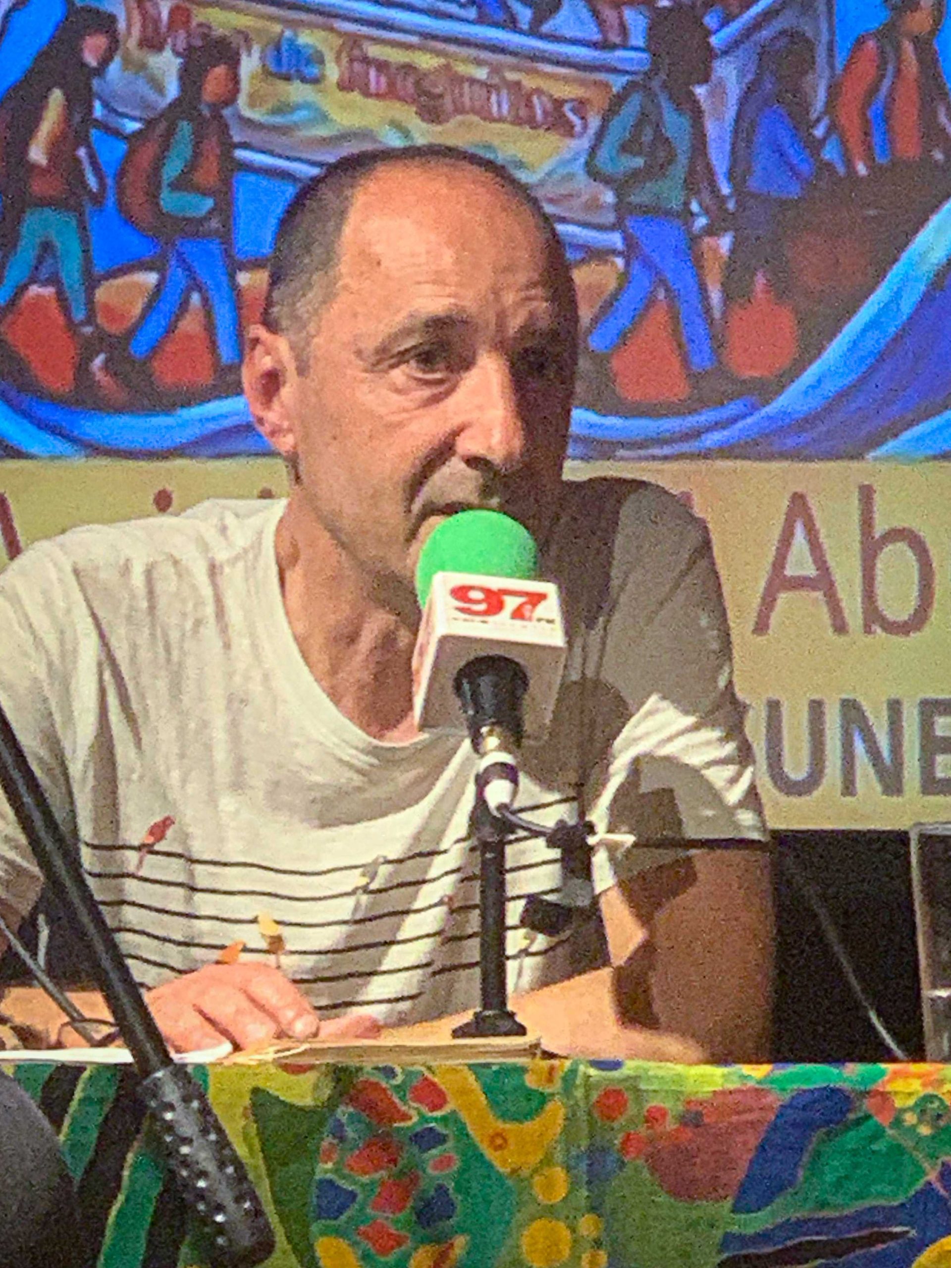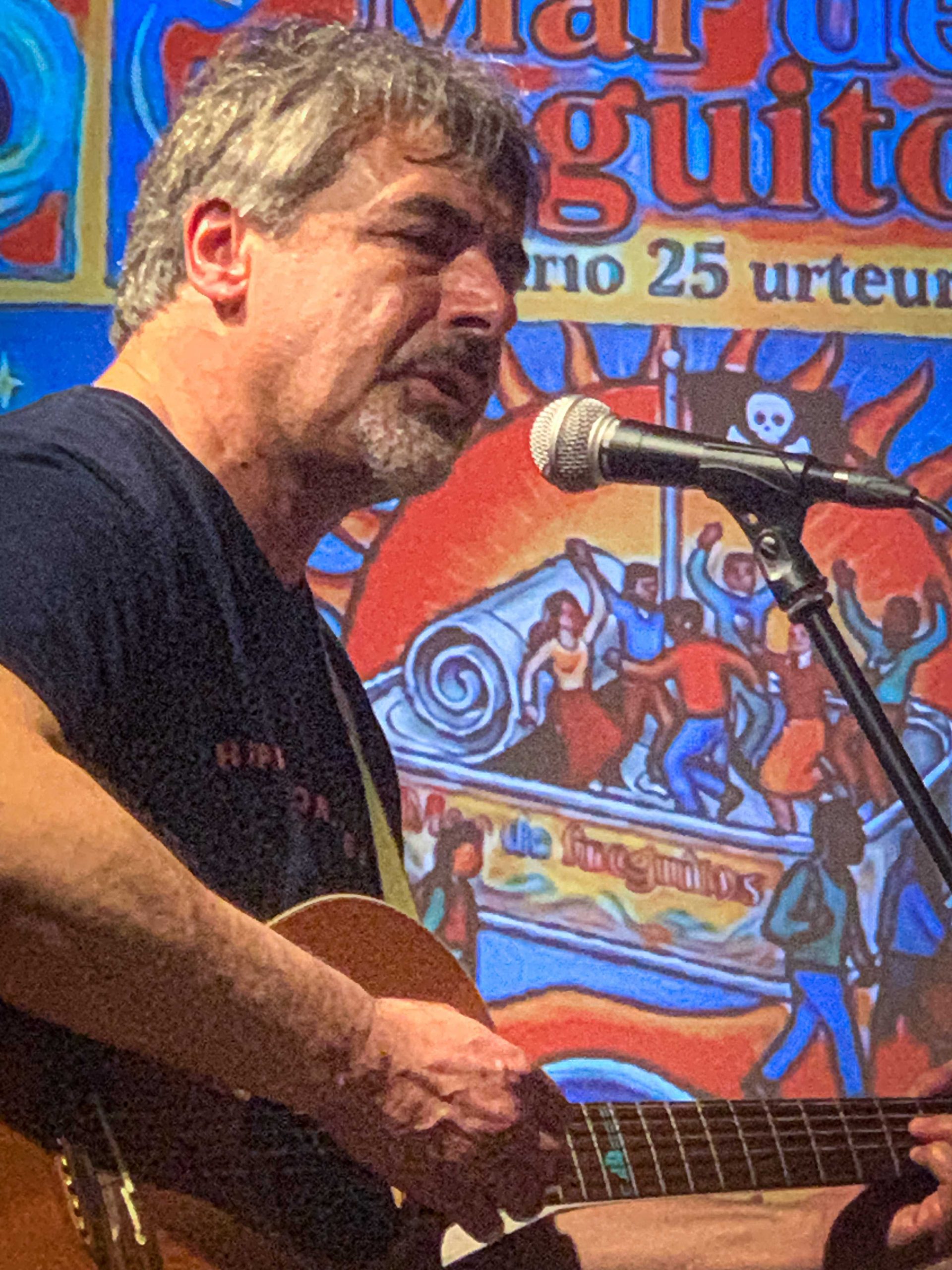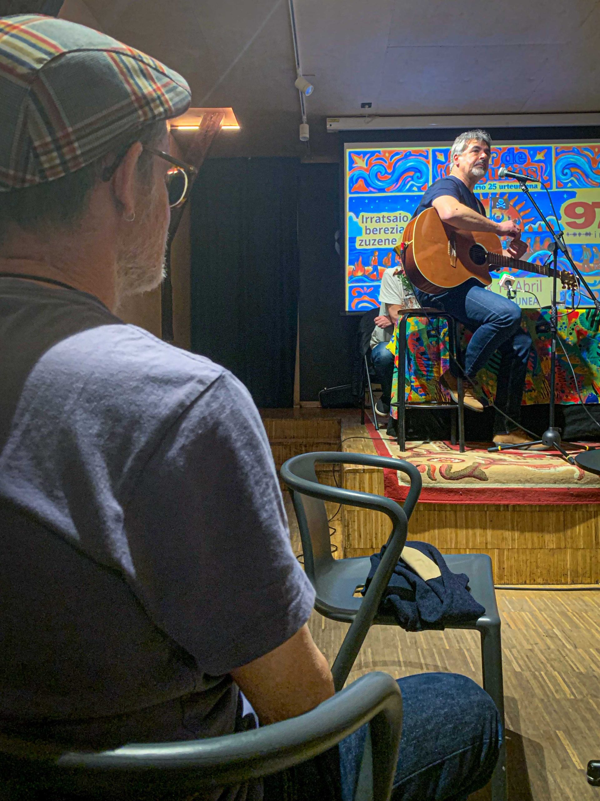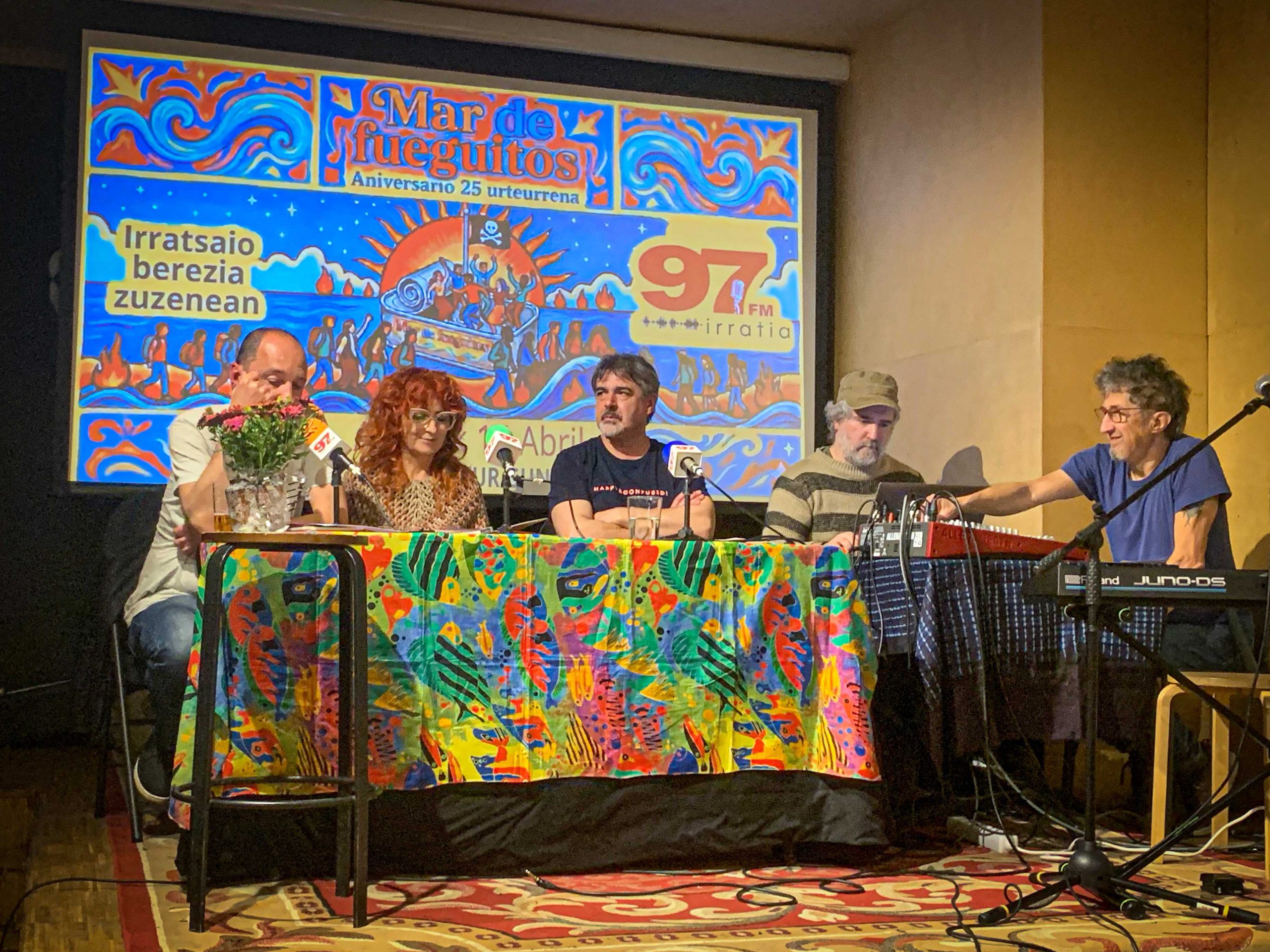 El fotógrafo Xabier Aresti también participó en nuestro programa especial en directo desde Bira Kultur Gunea, en el Casco viejo de Bilbao, para celebrar los primeros 25 años de Mar de fueguitos. Como sabéis, entrevistamos a Catherine Verbrugen, de la Plataforma Ongi Etorri Errefuxiatuak, y a Ilyasse Ba, soldador senegalés que hace diez años emigró a tierras vascas. Además, escuchamos varios relatos de Eduardo Galeano, Hind Joudah, David González y Víctor González, en la voz de María Uriarte, y disfrutamos con las actuaciones musicales del poeta José Blanco y de la banda Soulnettes. Aquí podéis ver algunas de las fotos del festejo. Mil gracias por compartirlas, Xabi.